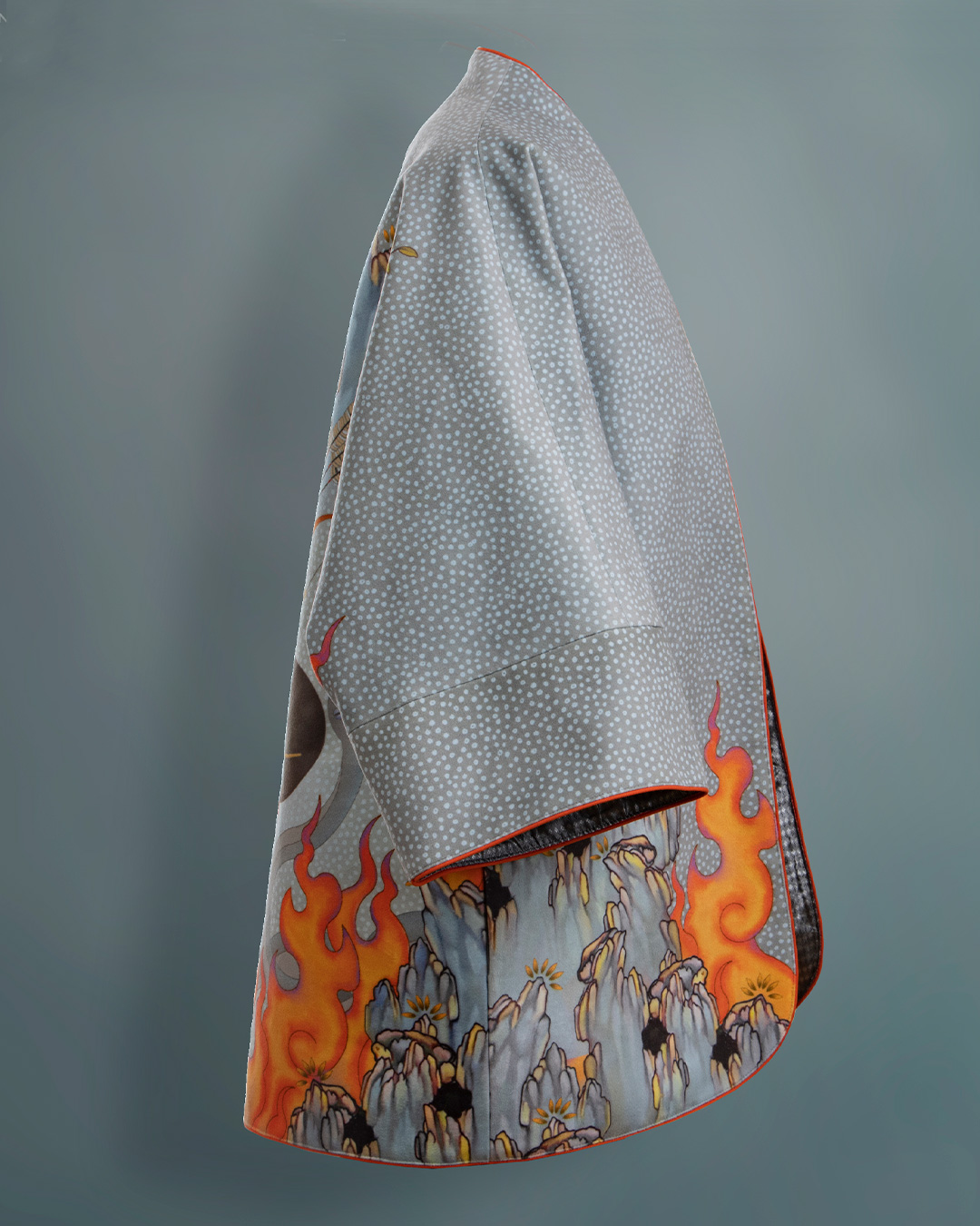 کیمونو طرح : «هوشنگ» از مجموعه «میراث» جنس : چاپ روی پارچه مخمل با آسترشمعی طراحی پارچه: ستی ریس فری سایز مدت زمان تولید وتحویل ۱۴ روز کاری